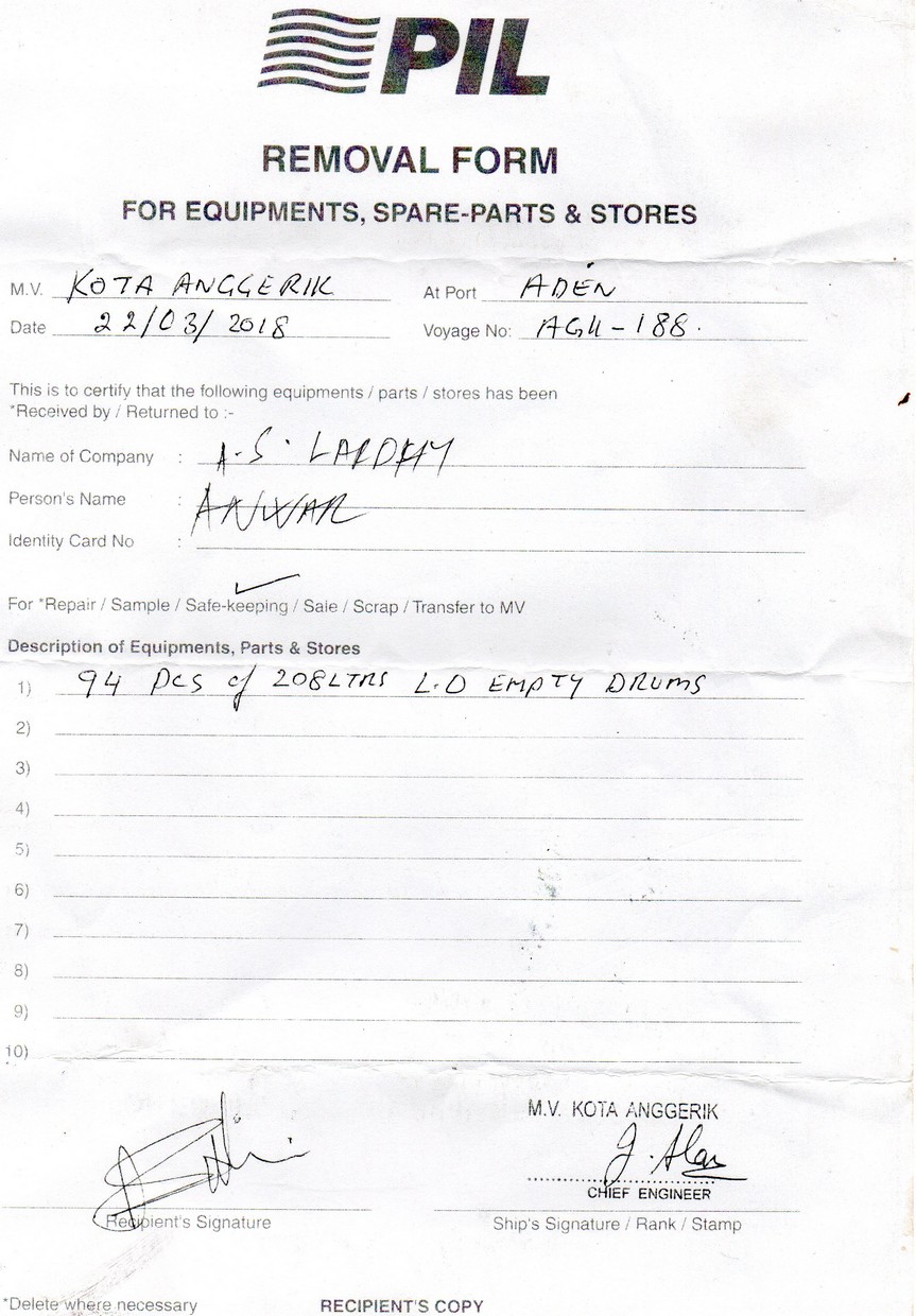 Its prohibited for the vessels to dispose the drums to the deep sea because its bothering them on board so they must discharge on the port.