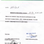 Fresh water supply includes supplying the vessels with fresh water by trucks from the city borehole to the vessels using small 4 tones trucks. The fresh water is very good for washing, cooking, cleaning and also Engine use.