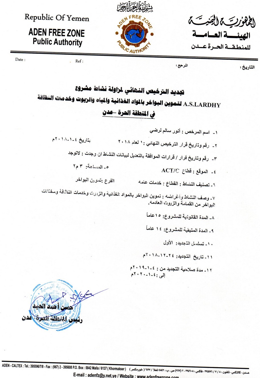 • Aden container agreement licence
