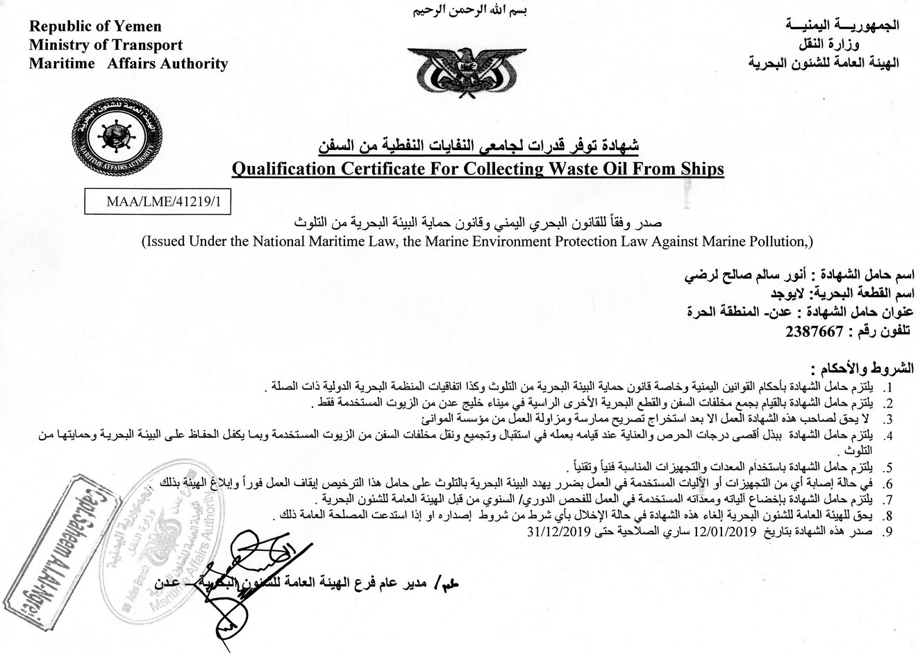 • yemen gulf at aden port authority